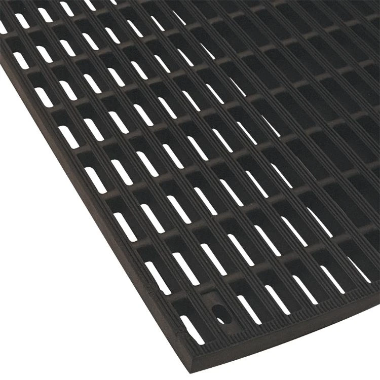 Deze rubber antislipmat met rechthoekige openingen is sterke mat van natuurlijk rubber voor het creëren van extra grip op het vloeroppervlak; de rubber mat kan voor vele toepassingen gebruikt worden en is geschikt voor zowel binnen als buiten gebruik.