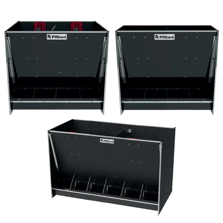Voederbak voor droogvoer, korrelvoer en gemalen voer. Bedoeld voor gespeende biggen van 7 tot 45 kg. Zorgt voor eenvoudige, snelle en efficiënte toegang tot het voer voor alle dieren in een groep. Een voederplaats biedt plek aan 8 tot 10 dieren.