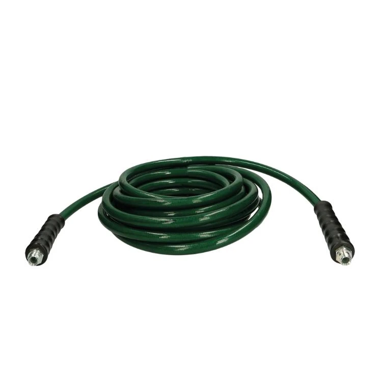 De hogedrukslang wordt geleverd in de kleur groen en zonder draai- of tegenkoppeling.