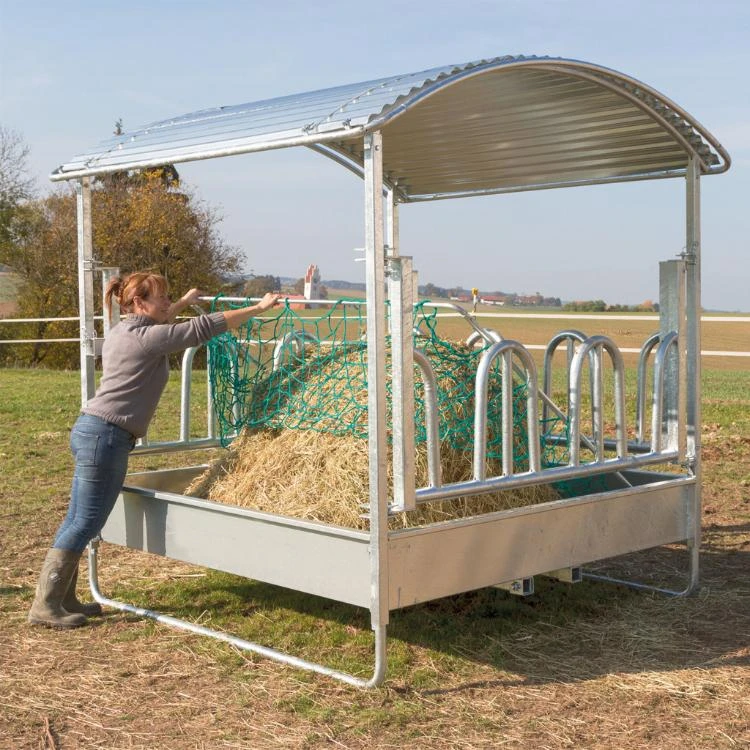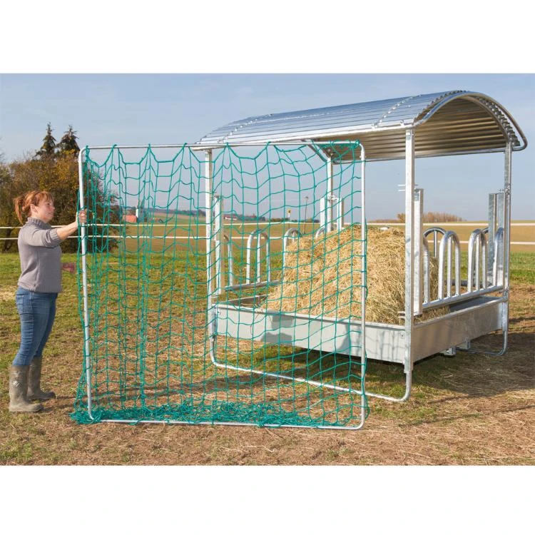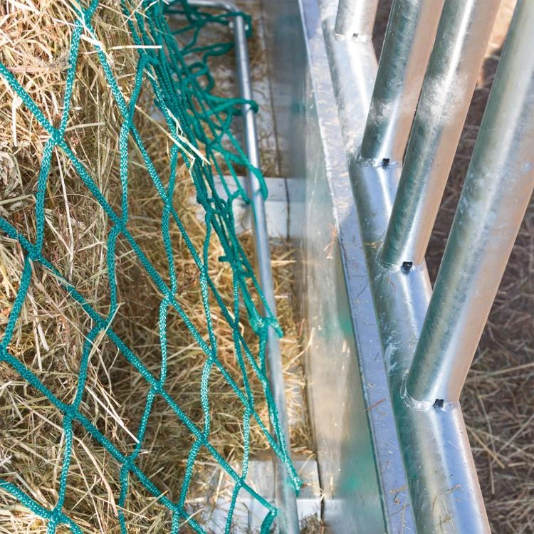 Het frame voor voederbesparingsnet kan optioneel op uw hooiruif bevestigd worden.