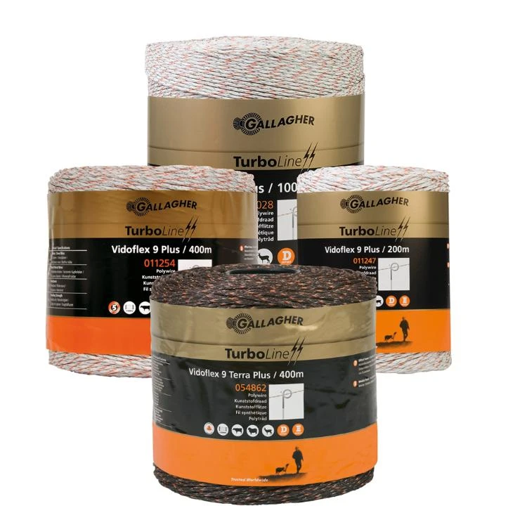 VidoFlex 9 Plus schrikdraad van Gallagher is de beste geleidende kunststof schrikdraad voor lange, permanente afrasteringen voor schapen, geiten, runderen, wild en huisdieren.