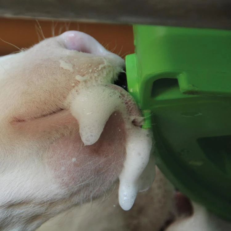 De drinkbak in combinatie met spenen zorgt voor een natuurlijke drinkhouding en bevorderd het krachtig zuigen met veel speeksel, met als resultaat een positief gezondheidseffect.
