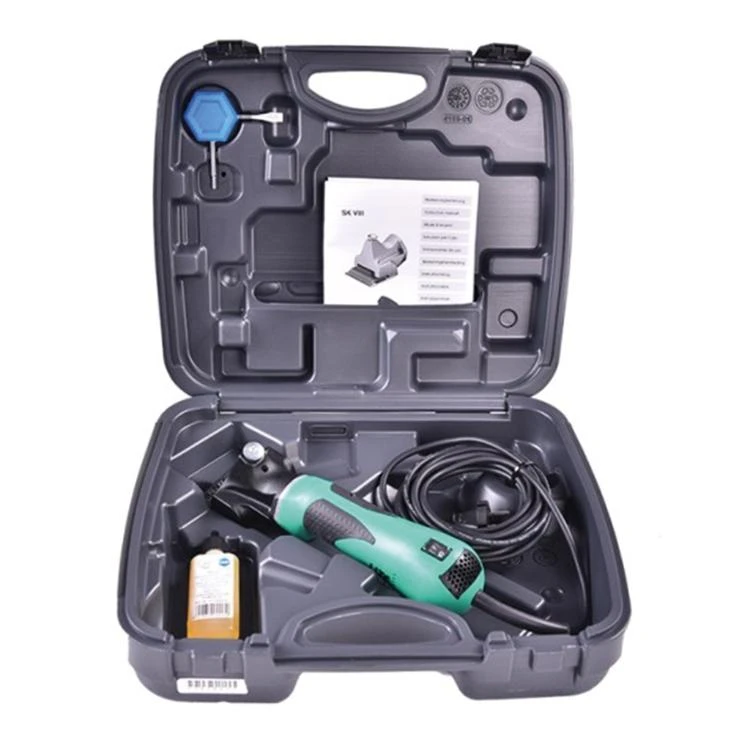 Standaard geleverd in een koffer met een set 102 messen (met 23-tands bovenmes en 31-tands ondermes), scheerolie, een speciale schroevendraaier en handleiding.