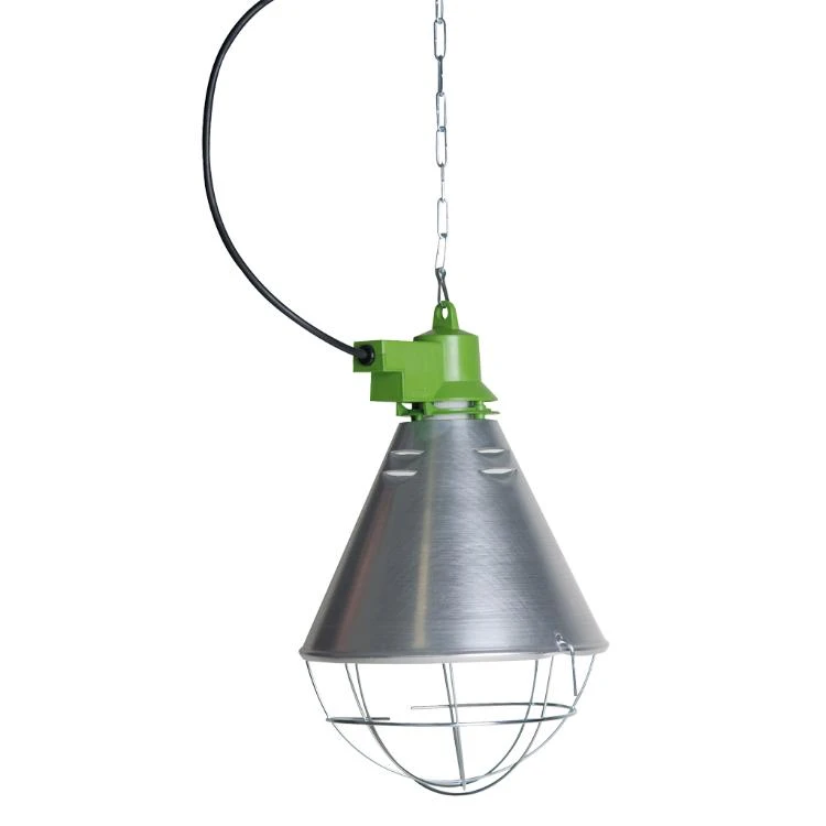 De MS Armatuur is een hoge kwaliteit armatuur voor de montage van een warmtelamp voor gebruik in de agrarische sector; de armatuur met lamp dient om (de nesten van) jonge dieren warm te houden.