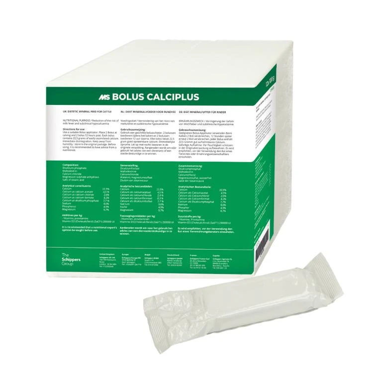 MS Bolus CalciPlus Mineralen dieetvoeder voor rundvee. Bolus met extra vitamine D3 en mineralen.