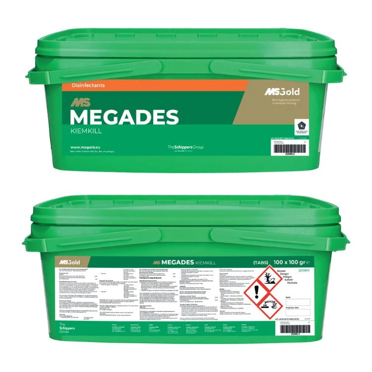 MS MegaDes Kiemkill is een poedervormig desinfectiemiddel ter bestrijding van bacteriën, gisten, schimmels en virussen in dierverblijfplaatsen en bijbehorende ruimten. MS MegaDes Kiemkill is ontwikkeld voor gebruik in de varkens-, rundvee- en pluimveehouderij.