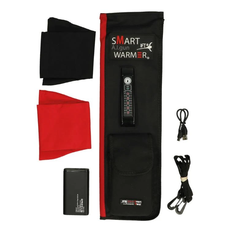 De verwarmer kan handmatig op de juiste temperatuur gezet worden. Wordt geleverd inclusief powerbank.