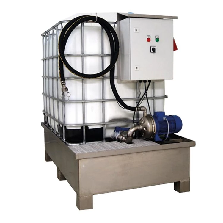 Het pompstation mobiel is onderdeel van een complete voertuig desinfectiepoort Premium