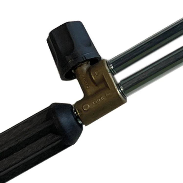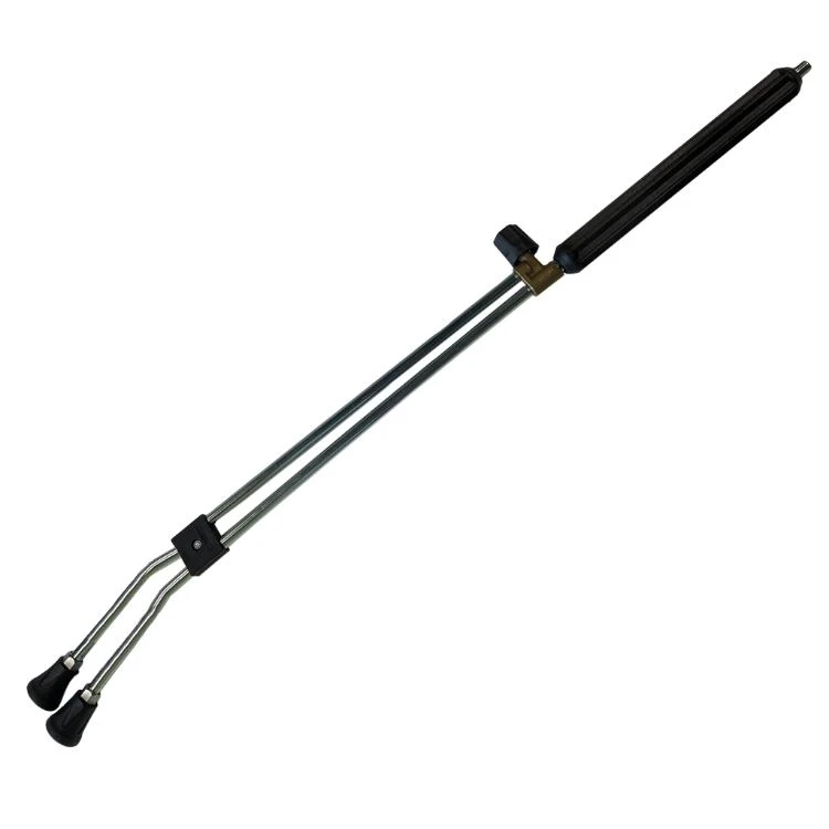 Verzinkte dubbele spuitlans voor hoge druk, met een bovendraaiknop boven op de lans voor een eenvoudige drukregulering in de lans.