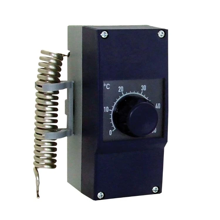 Deze Suevia thermostaat meet de buitentemperatuur en schakelt de transformator automatisch in of uit wanneer de ingestelde buitentemperatuur wordt overschreden.