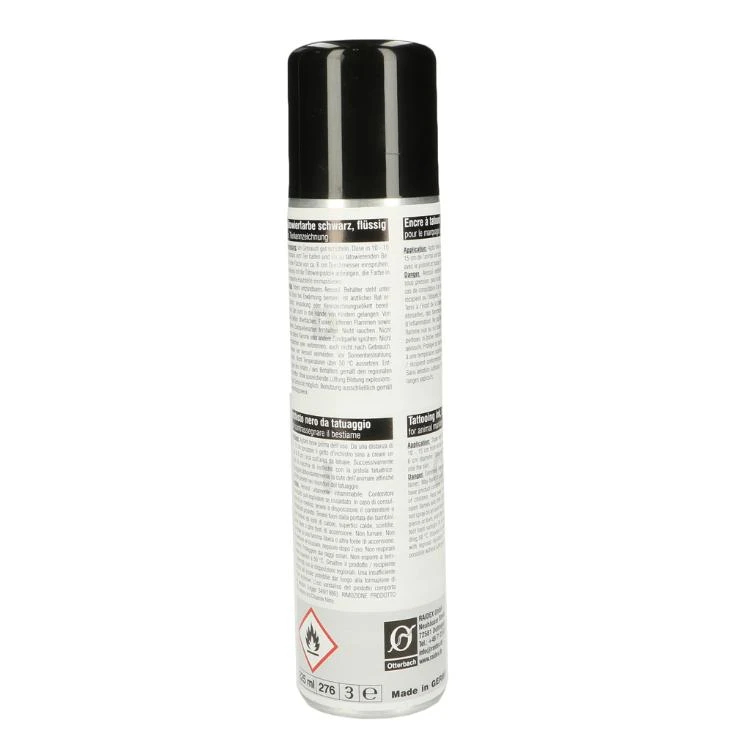 Tatoeëerspray voor het aanbrengen van tatoeëerinkt op de huid van dieren; na het aanbrengen van tatoeagegaatjes met behulp van een tatoeëerhamer of tatoeëertang zal de inkt een identificatiecode laten zien.