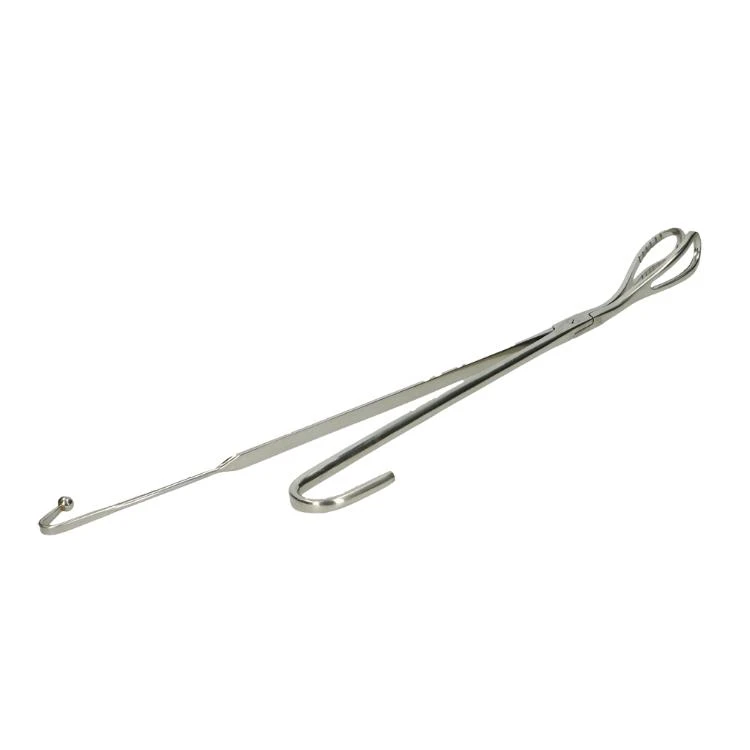 De verlostang is een 3-in-1 hulpmiddel bij de geboorte van biggen en lammeren; bevat zowel een tang als een ooghaak en een kaakhaak.