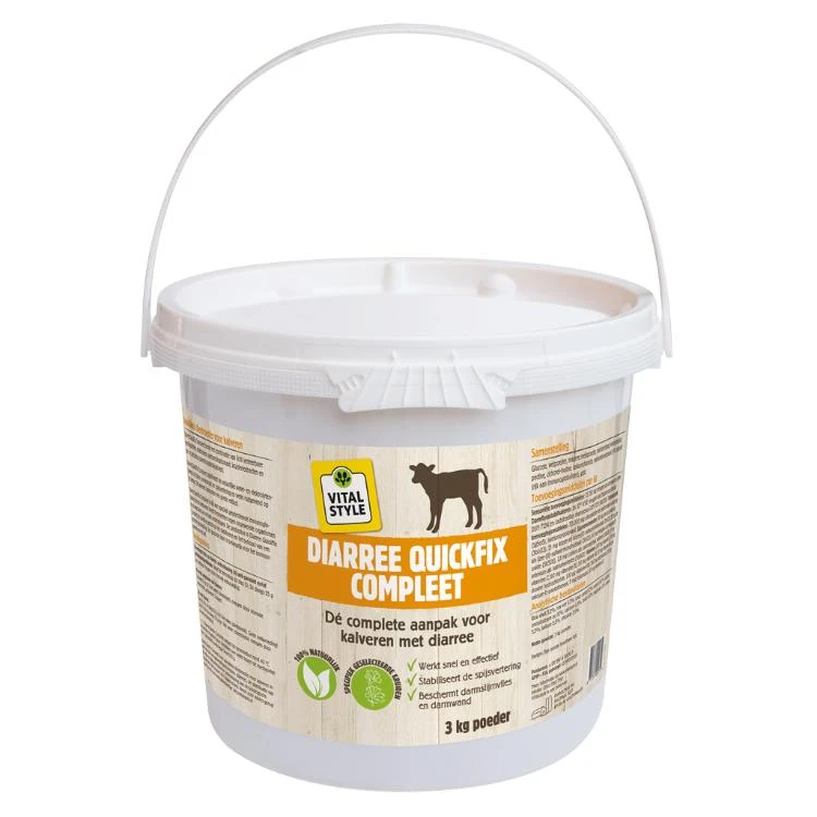 Vitalstyle diarree quickfix compleet is een dieetvoeder voor kalveren met een risico op spijsverteringsstoornissen.