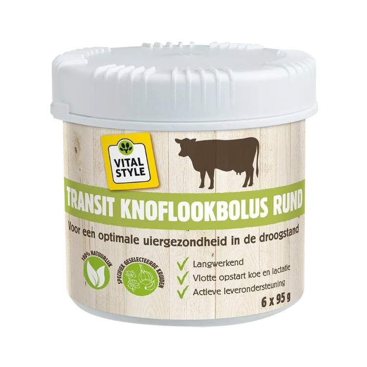 Vitalstyle transit knoflook is een langwerkende bolus voor een optimale uiergezondheid in de droogstand.