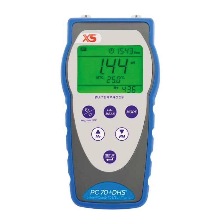 De XS digitale pH en Geleidbaarheidsmeter PC 70+ is een professionele en zeer nauwkeurige meter voor het opmeten van de zuurtegraad van drinkwater en voor het opmeten van de hoeveelheid vaste deeltjes in drinkwater of overige vloeibare oplossingen; de pH + geleidbaarheidmeter heeft een zeer groot gebruiksgemak en is geschikt voor intensief gebruik.